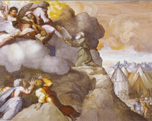 C'était déjà le cas sur une miniature de la première Bible de Charles le Chauve (IXe siècle) conservée à la BNF: